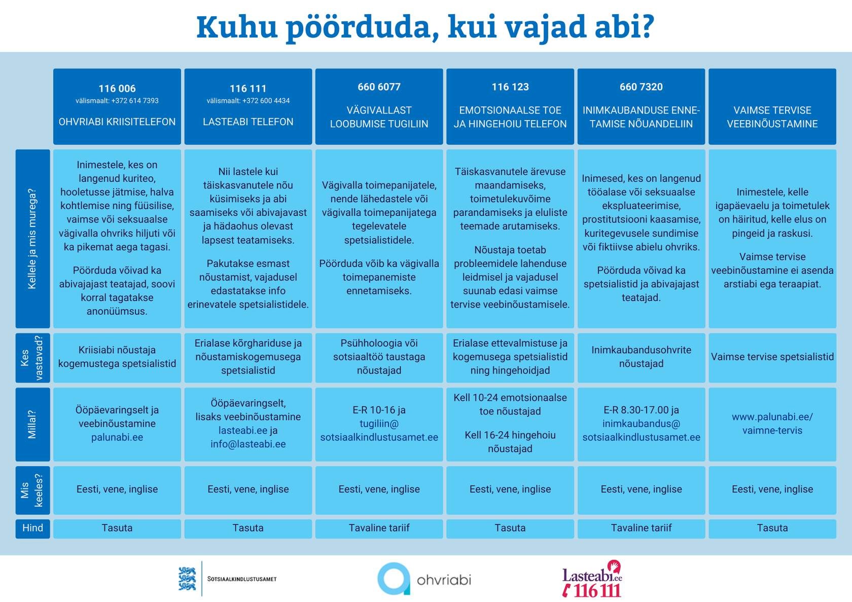Kuhu pöörduda, kui vajad abi?